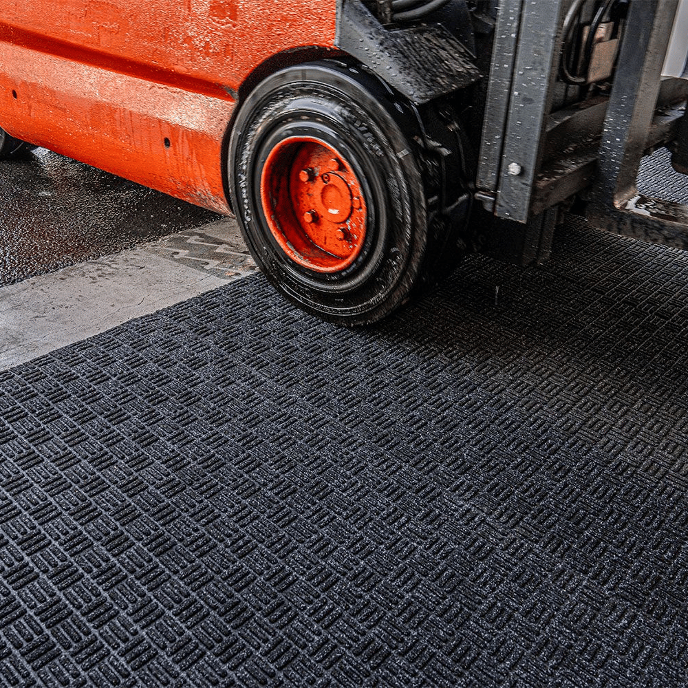 The Forklift Mat is designed to improve safety and cleanliness in busy warehouse environments by effectively absorbing water and removing dirt brought in by forklift trucks. Featuring a specially engineered polypropylene surface with an intricate woven structure, the mat delivers maximum scraping and wiping performance in high-traffic areas.
